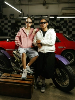 SANR STUDIO HOODIE ZIP DISTRESSED - PINK